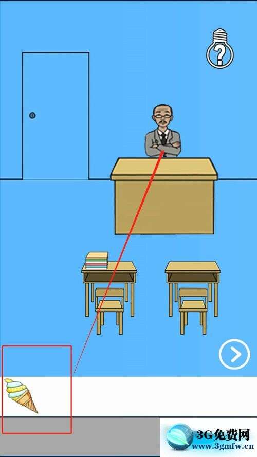 翻到第二页,点击雕像上面的冰激凌给到老师,点击开门。