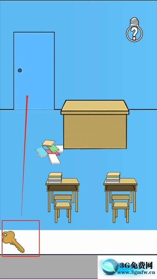点击讲台上的书,拿到下面的钥匙,用钥匙开门。