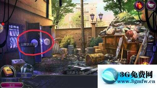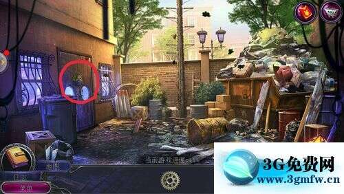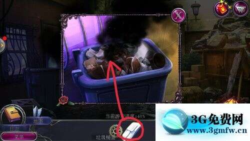 回到【酒吧门口】,点击左边的垃圾桶;用【垃圾桶盖】盖住起火的垃圾桶。