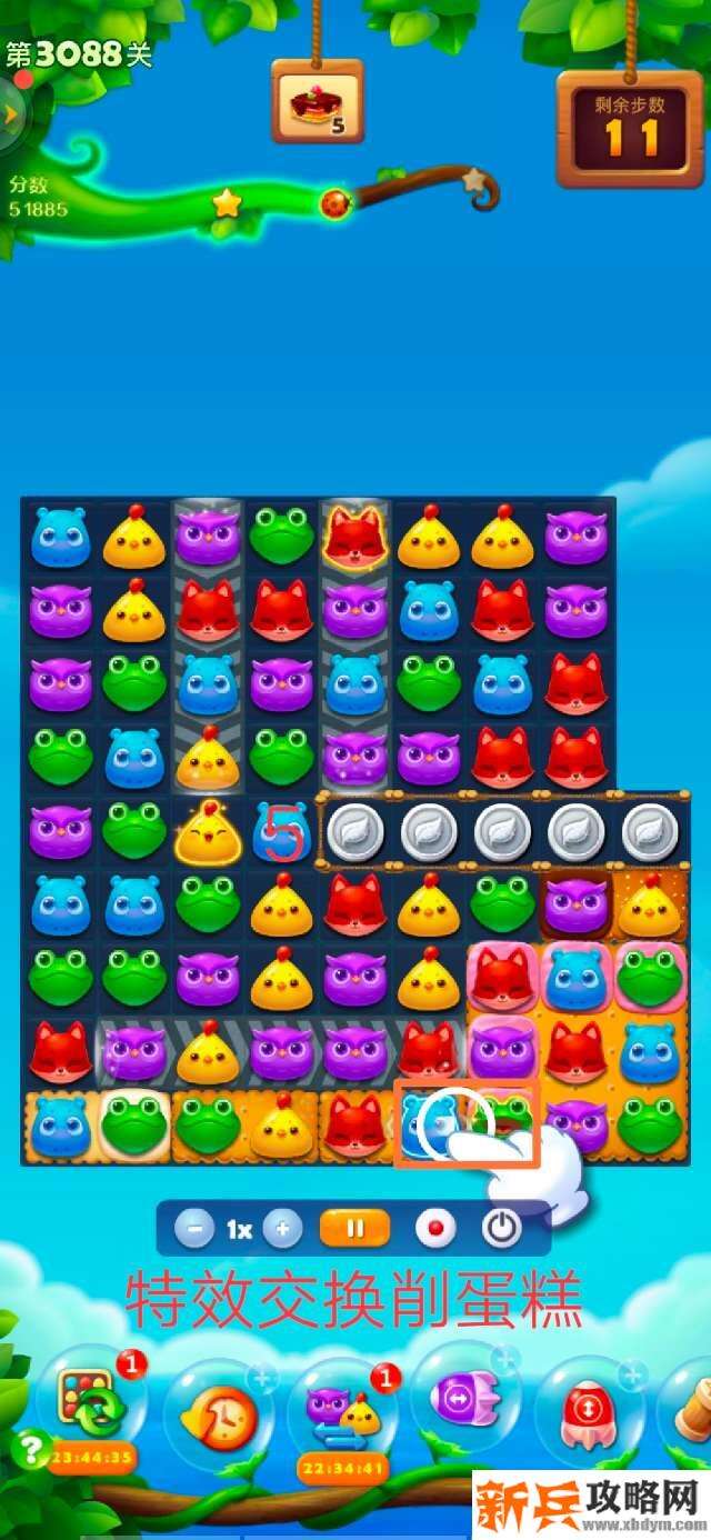 4.局面打开后多组特效攻击,完成蛋糕收集任务。
