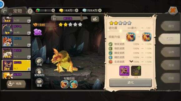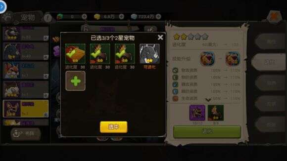 当进化所需的素材宠物选齐之后,点击进化按钮,宠物即可成功进化。