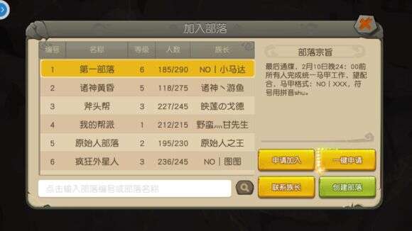在等级达到15级后可以开启部落功能,加入部落后可以跟部落中的族人们一起快乐的玩耍,关于部落玩法的详细介绍则另有攻略。
