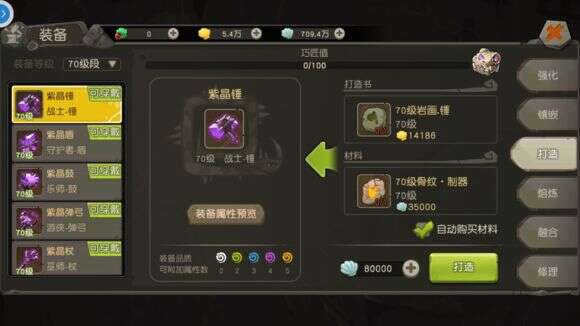 短期看来,确实没有打造装备的必要,不过当游戏达到后期之后,系统几乎不会再赠送给玩家任何高等级的优秀装备,所以之后的好装备都是需要玩家自己打造或者去购买的,因此本篇装备打造攻略会让大家对于装备打造系统有一定的了解。首先,点开装备界面,选择装备打造一栏。