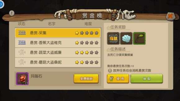在悬赏任务界面中,任务星级从低到高为一星到五星,任务星级越高,获得的奖励也更加丰富。由于每天只能完成10次悬赏任务,所以如何在10次中尽可能多的完成高星任务是所有玩家都需要进行思考的问题。