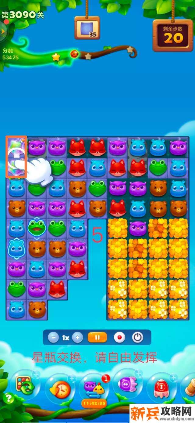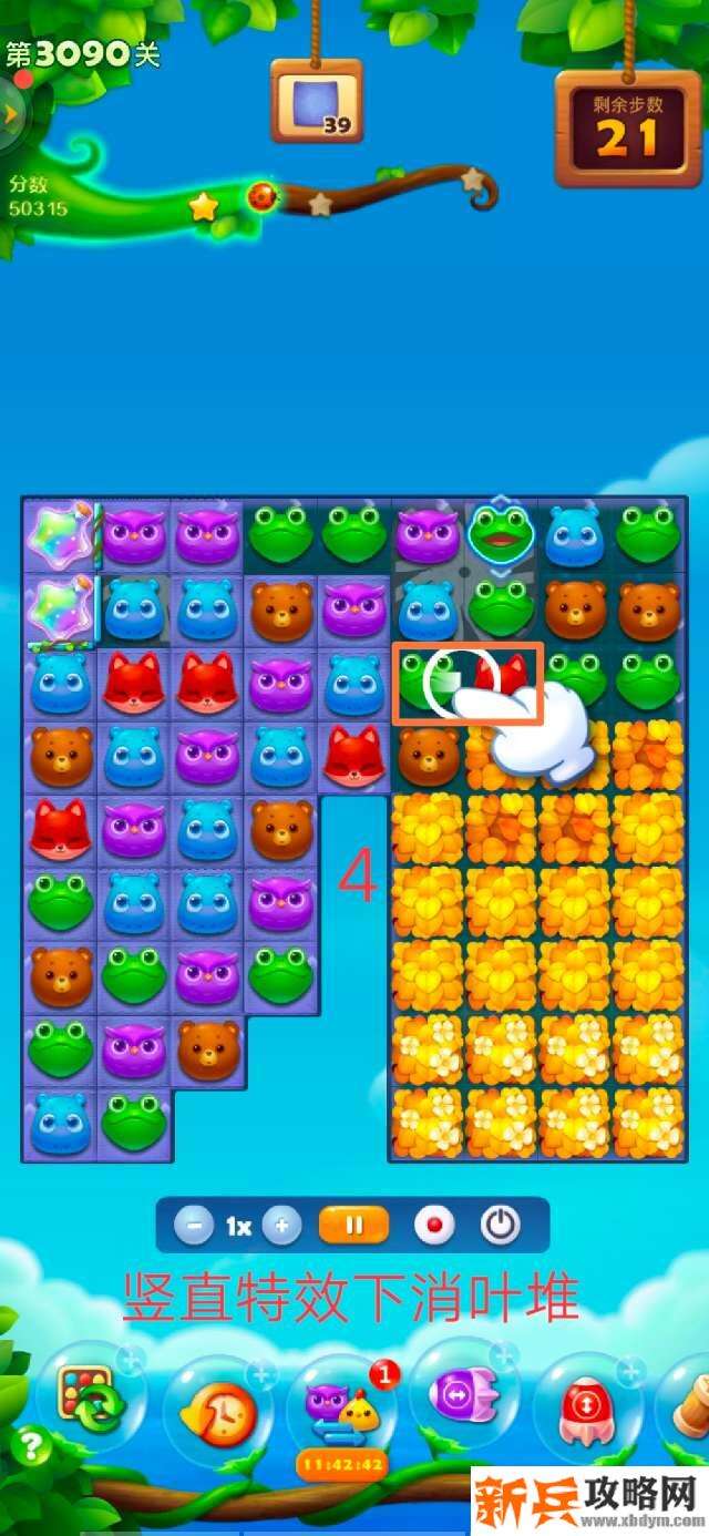 4.建议先组竖直特效消除部分树叶堆后,再交换双星瓶;