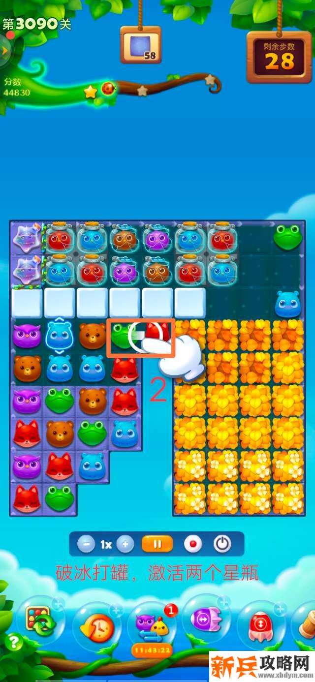 2.消除冰块,打爆罐子,激活两个星瓶;