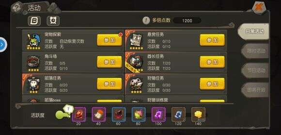 俗话说得好,“哪有宠物不拆家”?为了消耗宠物宝宝们的剩余精力,有效防止撒泼行为,大家可以将宠物派出去探索原始世界,也许它们会带回来许多意想不到的收获。角色达到38级后即可开启“宠物探索”,全天开放。进入活动界面,即可参加“宠物探索”活动。