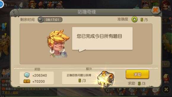 5道题目玩家只需要答对3道就可以顺利获得奖励,也就是说,全部通过求助也是可以获得奖励的。