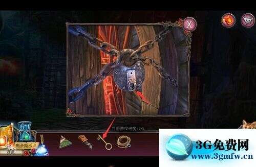 密室逃脱古堡迷城2《被遗弃的新娘》巢穴大门铁门钥匙绞车轮子图文攻略,密室逃脱古堡迷城2 被遗弃的新娘 巢穴大门 铁门钥匙 绞车轮子 然后我们点击图示的位置扫清蜘蛛网插上钥匙打开锁。 接着点击木门在门环安装上绳与钩,并把绳头接上。 接着我们点击绞车轮拽开木门并进去。 接着我们点击图示的位置拿到燃烧之印就这个任务就完成了。