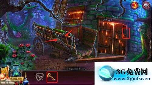 拿到扳手后,返回上一个场景,然后用螺丝和扳手拿到马车上的车轮。
