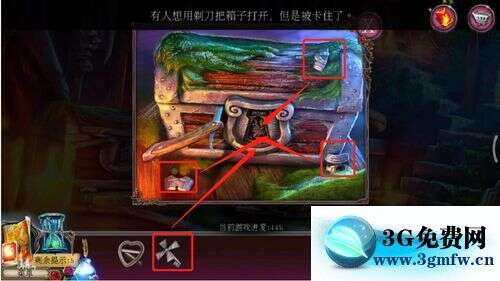 拿到风车后,用风车和下图箱子旁的碎块打开箱子。