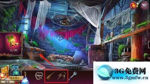 上楼梯后,在下图三个位置拿到扫帚、钥匙串和星星钥匙。
