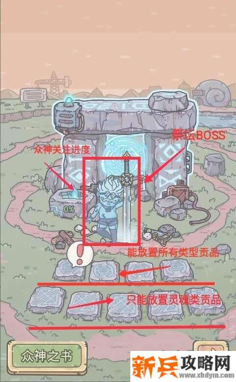 这是游戏内的一个玩法,通过神坛向众神供奉贡品,根据贡品不同获取相应奖励,其中最主要供奉灵魂类贡品,获得黑蝌蚪、神赐宝箱、石材和木材(所以该类光环技能词条加成,简直不要太香!)