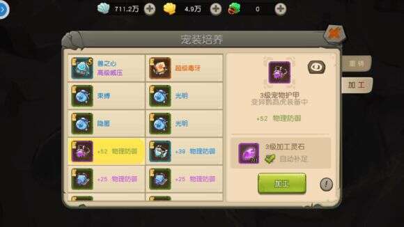 加工宠装会依据宠装品质、部位、普通或精致消耗不同数量的道具。加工后宠装的属性或技能会完全重置,不可逆转。