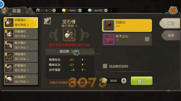当强化失败后,装备的等级会不升反降,这时可以选择消耗铁木之心,来使装备强化失败后,等级不下降。
