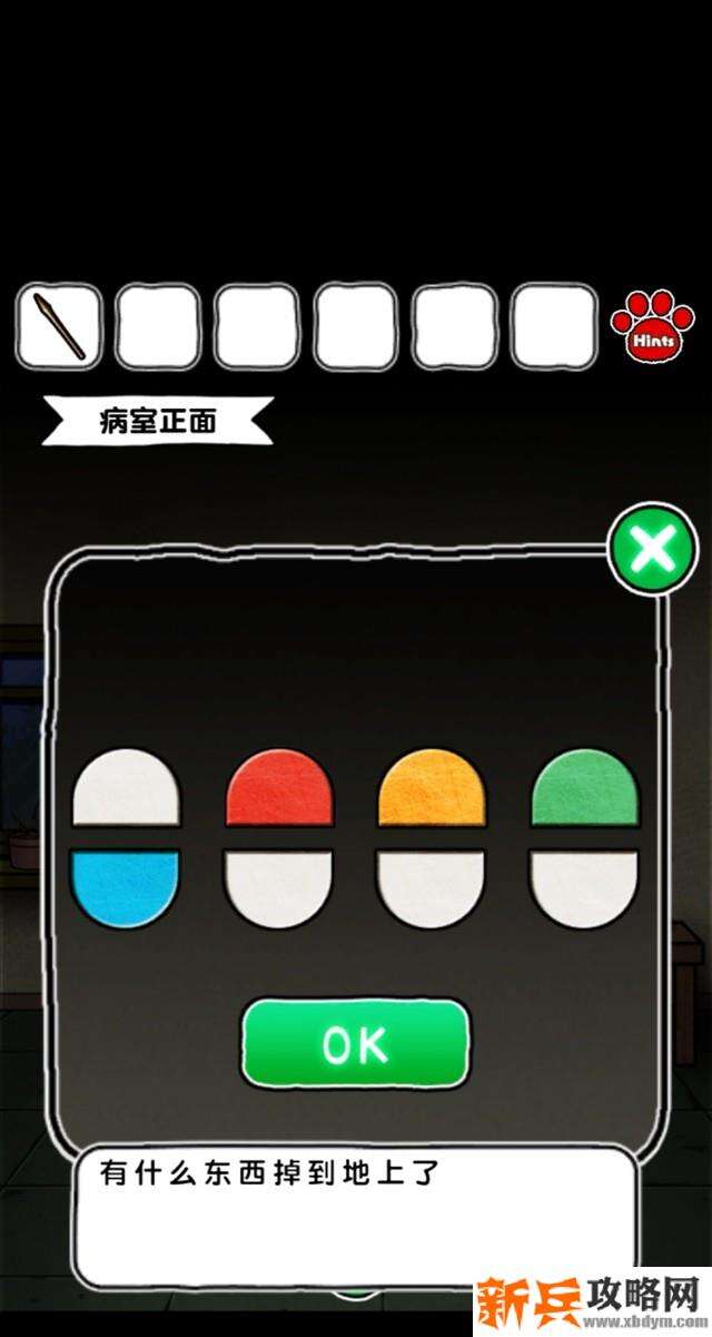10.回到病室正面,点击书桌抽屉,调整颜色和9A中的胶囊一致,书桌抽屉打开,得到台灯按钮。