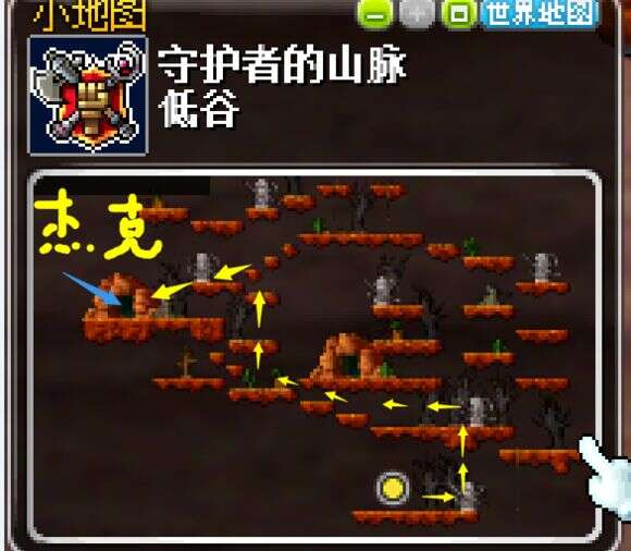 到达低谷,杰克在左上角石洞,注意,不要掉到台阶下面,掉到台阶下面就要重跳英雄谷2