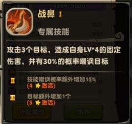 斑犸象攻击三个目标,造成自身等级*4的固定伤害,并有30%的概率嘲讽目标。