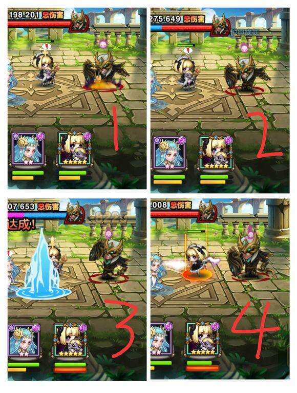 这里说一个令大家失望的地方,二觉技能的描述有误,跟级别没半毛钱关系,满级条件下,回复的数值只跟触发标记之后的标记层数有关,是触发标记瞬间回血。比如爱丽丝血量按照9w算,如果一层标记,回血数值就是90000*0.0121=1089点,层数最多是四层,具体区分如下图,有个骷髅头表示一层,环绕的标记一小段代表一层。所以触发了第四层标记,那么回血数值是4356点,竞技场或者传奇竞技场环境,再翻1.45倍就是回复数值。那么这个回复大概是什么概念呢,其实跟觉醒技能的持续回血叠加之后,大概就相当于每秒回复1000点血量左右(钢骨是1100点每秒)。