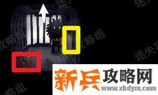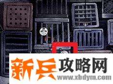5.点击下箭头进到海报笼子里,右边撬铁棍的地方爬进去,点击放大镜,