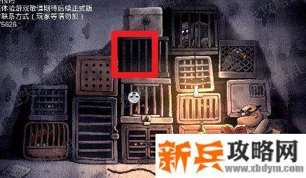 3.下来后,地上的海报点击放大镜查看是一张大胡子马戏团的海报,笼子右边撬下一根铁棍,点击上去的箭头,回到最初的箱子,对上面的铁板使用硬币,打开后上去