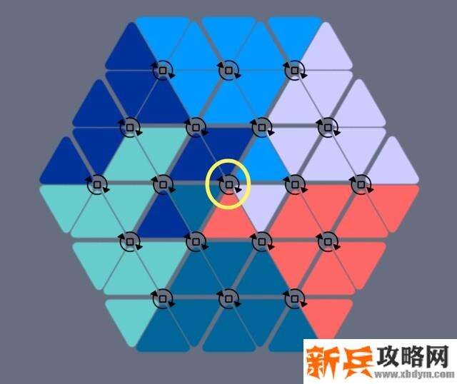 在边缘的3-3的正六边形只需要转动正六边形节点即可还原