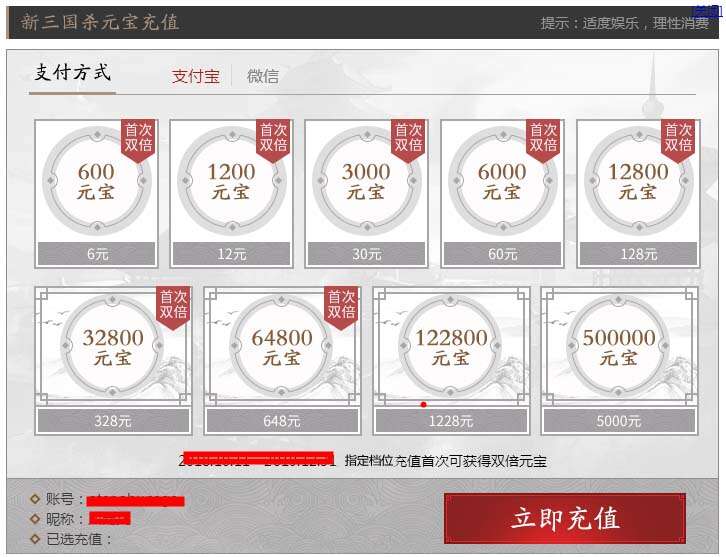 游戏内新增各档位充值包、活动期间在游戏内首次购买指定档位充值包还可享受双倍元宝福利。(仅限官网用户)