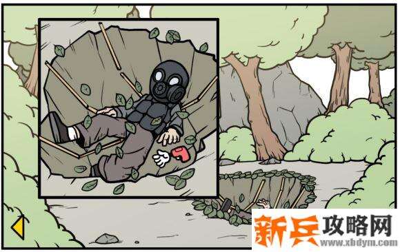 1. 在场景2用竹架子和落叶制作陷阱,然后对靶子开枪吸引守卫前来使其落入陷阱,检查陷阱得到防毒面具与伸缩枪