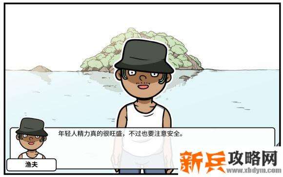 与老婆进行简单对话后,前往神秘岛,在与渔夫对话后登岛