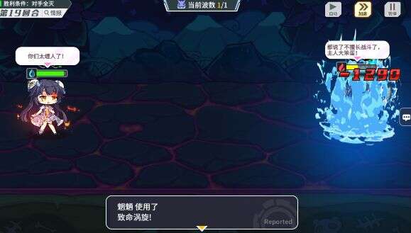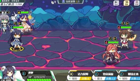 之后一直继续直到替补角色登场,可以无限重读到女娲被妖火命中,也可以不管她,然后继续,第二回合妖火给凤凰