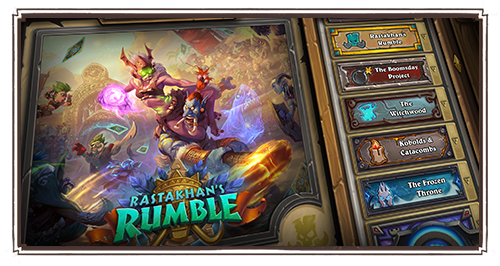 我们一直希望更好地支持所有游戏模式,包括竞技模式。在巨龙年的每个扩展包之间,我们将会通过轮换卡牌系列的形式来对竞技模式的牌池进行两次更新,从而保持新鲜感。首次轮换期间,竞技模式牌池里将包含以下几个卡牌系列:基本,经典,“纳克萨玛斯的诅咒”,“上古之神的低语”,“龙争虎斗加基森”,“女巫森林”,还有今年的第一个扩展包。