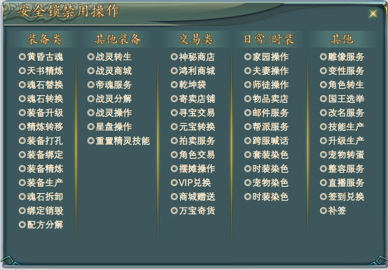 4、还原为时间锁的保护方式:通过将安全锁修改密码,将密码设置为空的方式来取消密码锁的保护措施,继续沿用老的时间锁方式保护角色数据安全。