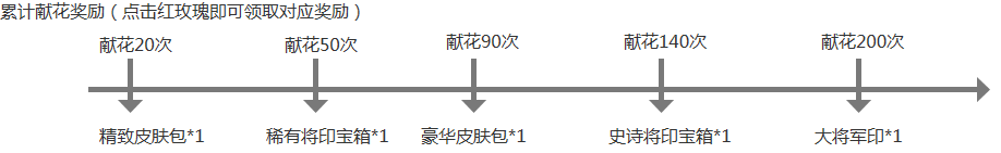 4、未报名参赛的玩家可通过游戏内购买红玫瑰礼包获得的红玫瑰,为参赛选手进行献花,献花达到对应次数也可领取对应奖励。