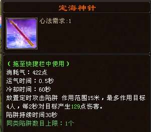 定海,好处有两个,一判断对方位置,二对方在圈内隐身被打出来。所以在定海的圈内,你作为逍遥可以用隐身躲对方的暗器连击,对方有时候甚至用隐身都躲不了你的暗器连击。当你没有技能凌波逃走了,你不知道对方在哪里,你可以放个定海然后缩到角落,当看到定海炸了时,你就知道有人来了,你可以选择用初级隐身。来躲对方的追踪。