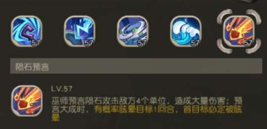 如果我们把海啸预言叫做全体伤害的话,那么巫师的大招陨石预言可以理解为一个强力的群体伤害,攻击4个地方单位,群伤的同时带控制,如果脸好的时候可以控好几个,可以说是打架PK和快速推图的实用型技能了。