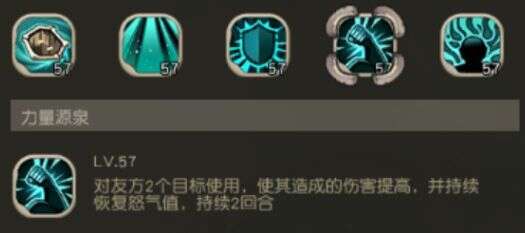 这个技能比较简单,就是给队友上一个增益的buff(状态),提升伤害提升怒气,持续两回合,用法看情况要进行预判。
