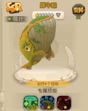 犀牛鲸地位上没有青蛙高,但说实话非常实用,稀有度没有豚眼蛙高,它是一个纯加血的辅助宠,当做副宠进行培养还是非常不错,当然如果你自己玩乐师的话可以不必花特别多的资源来培养它。