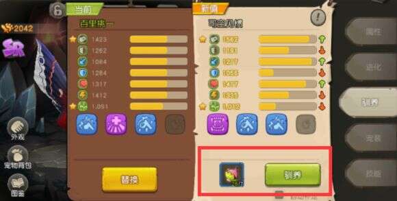 点开你的宠物面板,选择驯养,宠物变异之后会提高你的资质属性上限,洗出变异之后也别忘记点击替换,替换之后还得在变异基础上继续洗。洗出变异之后点击替换会维持变异状态,也就是说明在变异的基础上再进行驯养!!