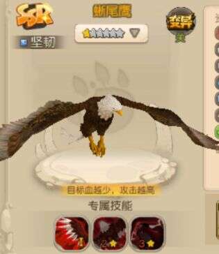 作为非洲人的楼主到现在都没有摸过这个宠物,它真的真的真的非常稀有!欧皇和氪金大佬的专属宝宝……目前只能通过宠物宝库抽出来或者是橙色万能碎片随机合成出来。但是这个法伤宠物真的很强力,主要用于收割,楼主曾见过大佬们养好的蜥尾鹰,那真的杠杠的眼馋。实在是又帅又强!这时候可能有小伙伴会问,假如有蜥尾鹰和鱼尾豹如何选择,楼主不敢说这二者之间优先级谁高于谁,只能说各有作用,有条件可以都养,没条件……也可以慢慢都养起来……