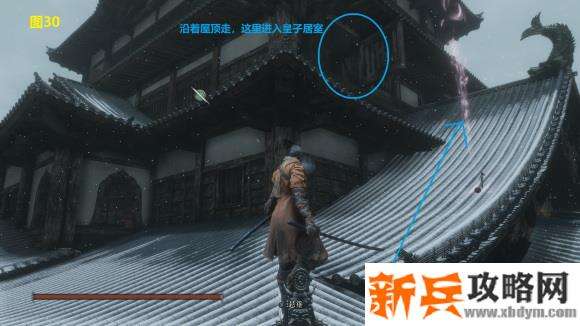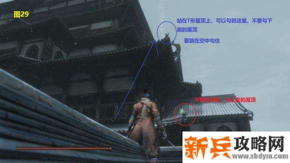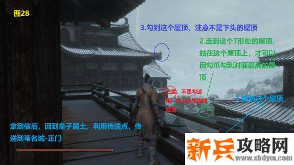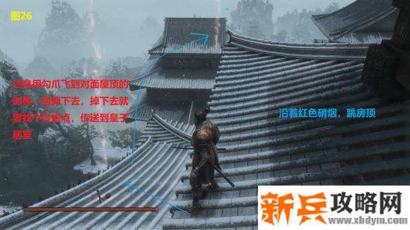 1.沿着红色硝烟利用勾爪跳房顶去找一心,注意,如果勾爪显示为灰色的,可能需要跳到空中在释放勾爪。注意不要掉下去了。千万要稳。