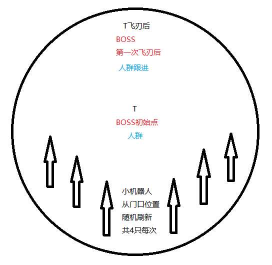 第一波【飞刃】过后,拉至接近场地边缘的位置(留一小段空间)