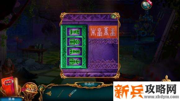 墙上暗格——安有符号的板(按板上提示调整左侧符文)——仪式锤,拉下拉闸——地面暗台升起——完成寻物游戏——悲伤之眼