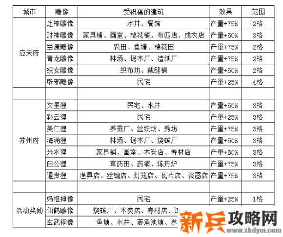 备注:每个雕像都有祝福格子提示,只要建筑占用至少一个格子即可生效,不用把建筑全部放在格子里边。