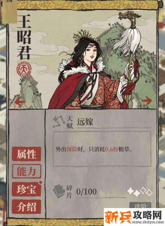 给大家贴几个比较鸡肋的人物 如果不是一定要集齐 建议别抽了 鸡肋第一名王昭君 作为天级人物基础属性捞的一批 除了长得好看啥用也没有