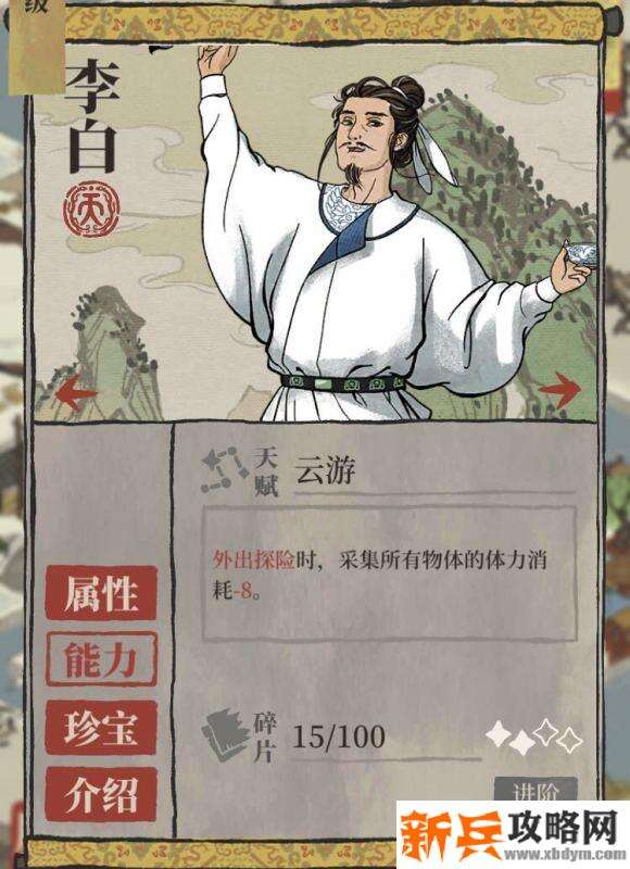 个人觉得这三个是比较好用的 李白李时珍探险必备 李白减体力 李时珍冒险属性高的一批