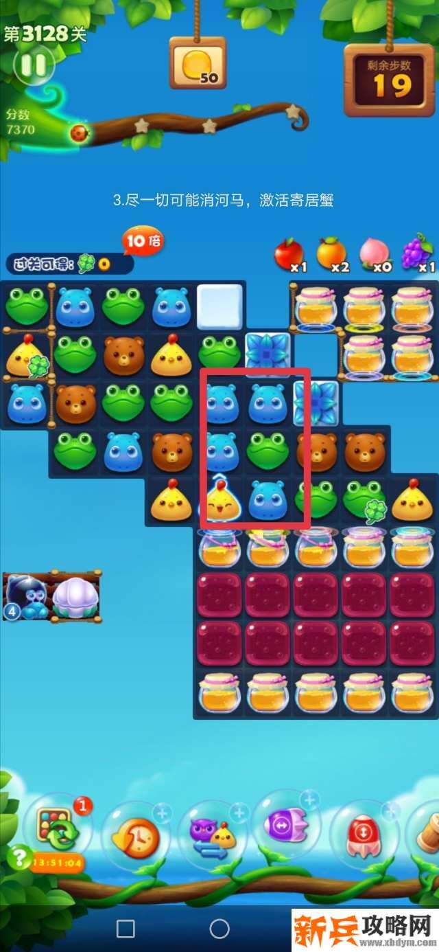 看准寄居蟹与水母发射台对准蜜罐,消除河马激活。