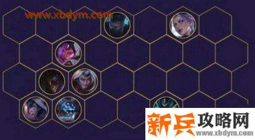 暮光之眼-慎、放逐之刃-锐雯、刀锋舞者-艾瑞莉娅、、影流之主-劫、疾风剑豪-亚索、逆羽-霞、无极剑圣-易、潮汐海灵-菲兹(7人口即可成型、8级再补小鱼人)