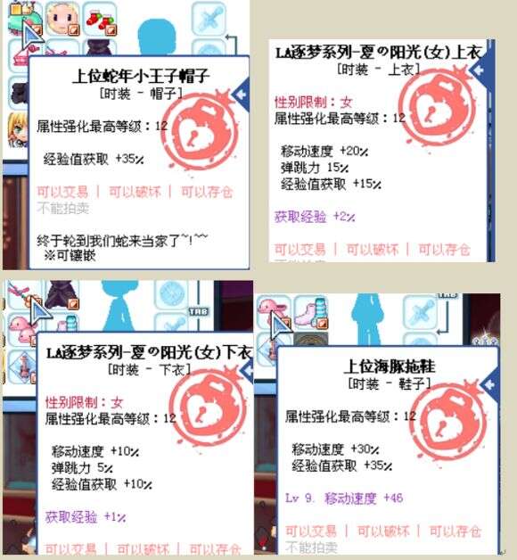 除了这些,我建议买LA 上下衣,蛇头,挂机升级提成不错,能一直陪伴你成长的东西