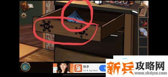 在门口邮筒上这个图案记住是O。进门捡这本书,进左侧房间开龙头流出红色液体。进厨房开抽屉捡一袋盐,并记住这两个图案对应的字母。