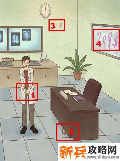 依次点击提交男人的手、办公桌下的鞋、墙上的挂钩、右边的【2093】。